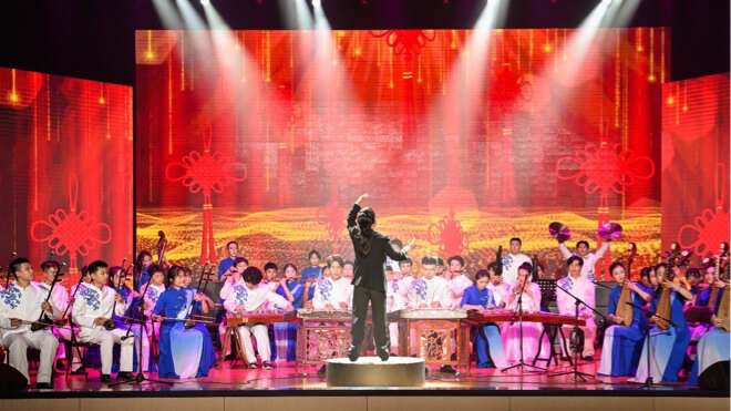 激情洋溢,乐团合奏《庆典序曲》;心潮澎湃,校友共唱《卓越之歌》。本次展演以“溯源经典、承化卓越、阐发新篇”为主题,涵盖器乐合奏、舞蹈、合唱、戏曲、朗诵、武术多种艺术形式。《京剧联唱》《莲湘闹春》《醒·狮》等精彩节目的呈现,构画了壮美的祖国画卷、展现了中华传统戏曲的魅力风采、歌颂了仁义礼智信的传统价值观、呈现了独特视角的中国非物质文化遗产。