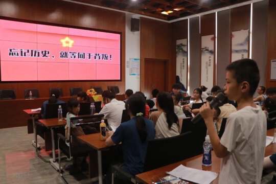 “小朋友们,你们知道八十八年前的今天,发生了一件改变中国命运的大事吗?”课堂上,实践队队员播放了卢沟桥事变的珍贵历史影像,用沉静而有力的声音讲述了七七事变的故事。