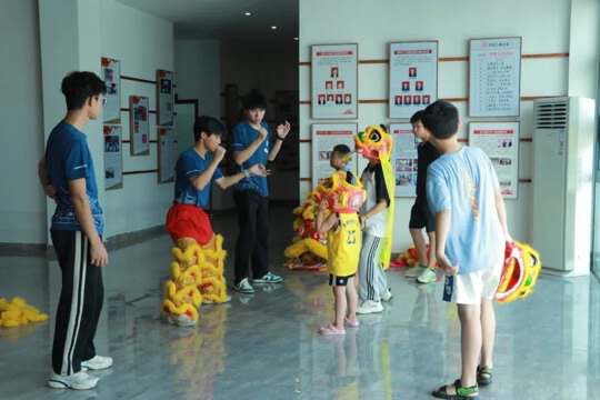 队员们首先细致分解动作:托稳狮头需核心发力,弓步前行要重心下沉;舞龙时,龙头需明确指引,龙身则紧盯前者步伐,保持间距一致。孩子们听得认真,分组练习时却状况频出:舞龙组步伐凌乱,龙身拧成“麻花”;舞狮组动作僵硬,狮头歪斜。队员们穿梭指导,渐渐地,专注代替了慌乱,那份齐心协力的成就感便是最生动的课堂。