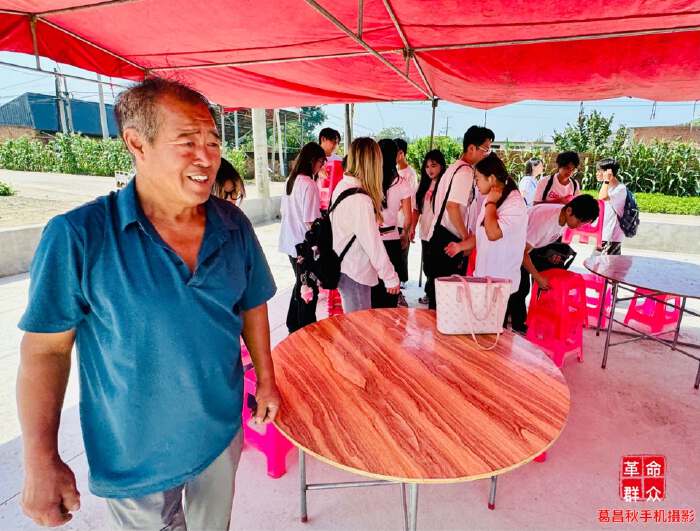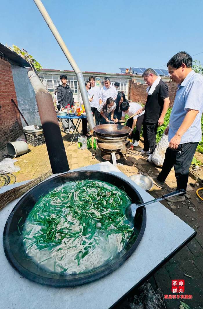 一旁的圆桌上摆放着鲜鲜嫩嫩的蔬菜,还有瓶瓶罐罐的佐料。不年不节的,这家人为啥如过节似的忙活。当一群人走进小院,顿时,点赞和欢笑化解了“掌勺大厨”的汗水,一下直奔主题:让大学生们尝尝咱们的农家饭。