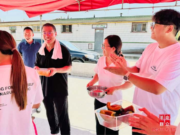 老师们端菜端饭也挺忙。 葛昌秋摄