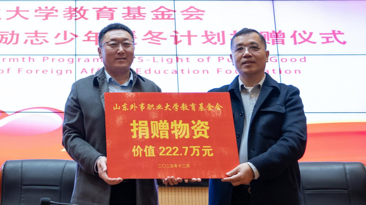据悉,本次活动由山东外事职业大学教育基金会发起,得到了山东众邦社会公益服务中心的全力支持,捐赠物资价值达222.7万元。山东外事职业大学将持续秉持“汇聚爱心、成就梦想”的使命,搭建公益桥梁,联动社会力量,让关爱与责任在校园传递,为青年学子的成长保驾护航,为公益事业发展注入持久动力。